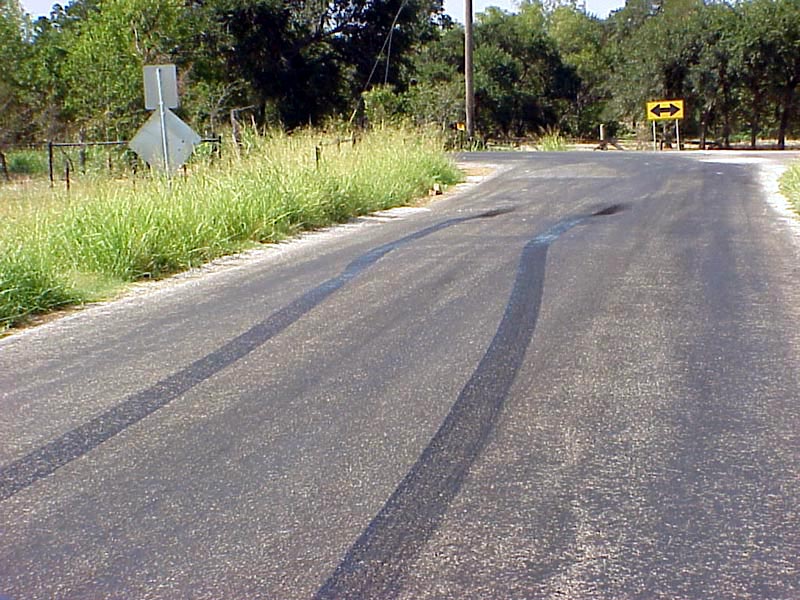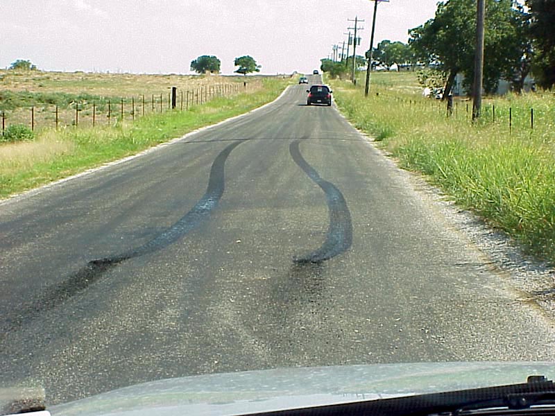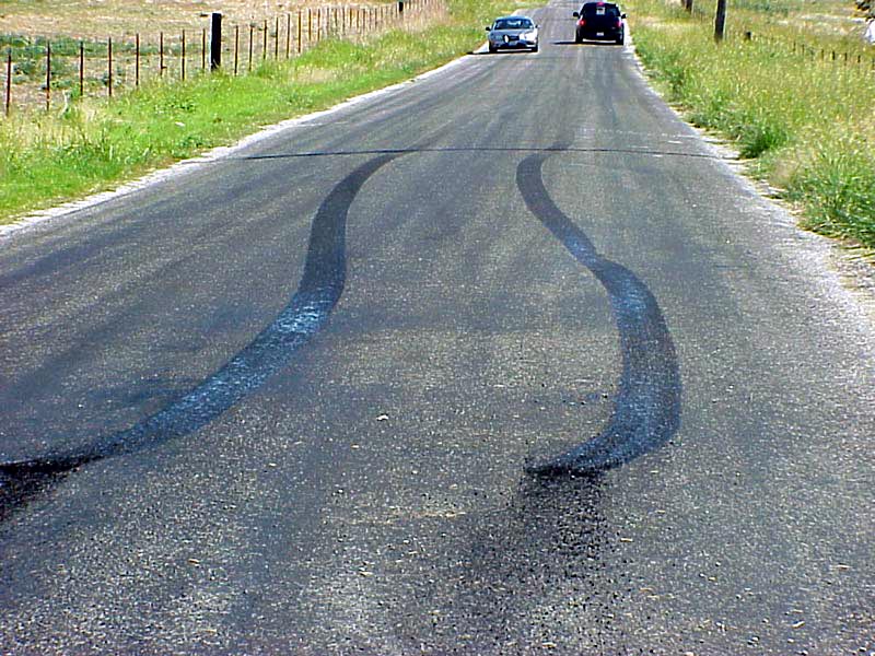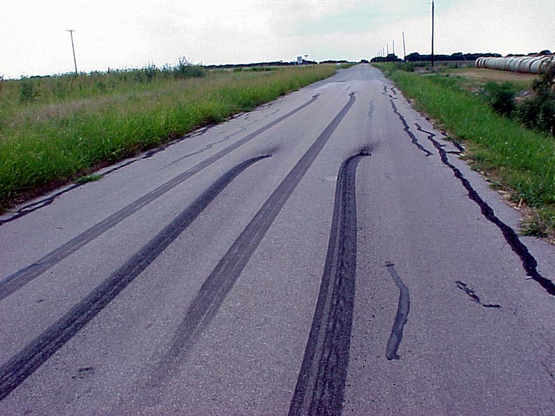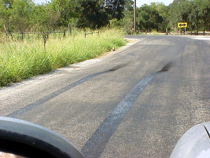 Close up of the pavement showing the Liquid tar that began bubbling to the surface after a pass by the Go_rilla