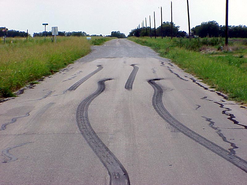 In this picture you can see the road actually liquefied under the immense pressure and heat generated by the Go_Rila