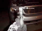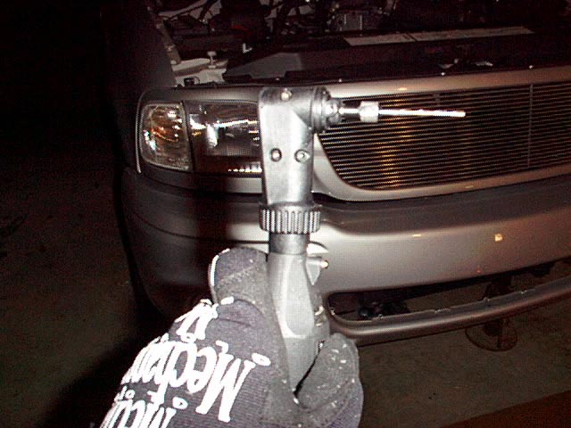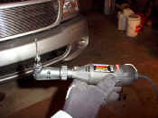 after drilling holes in the tabs, have someone hold grill in place while you take the Dremel with the 90 degree adapter, get under the truck and drill holes in bumper cover using the holes in the tabs to show you where to drill.
