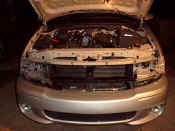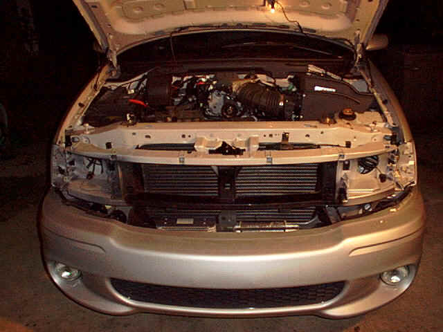 second - take bolt out of intercooler coolant tank and push back. then remove radiator cover.