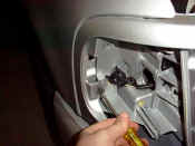 seventh - the instructions said to only break out the tabs on either side of the surround, but I didn't like the first one on top and bottom poking thru the grill, so i broke them off as well. to break off the tabs, lightly score them with a utility knife then apply pressure, and score again. they should break off cleanly. go back and trim as needed.